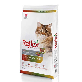 طعام القطط البالغة عالي الجودة من ريفلكس مع الدجاج والأرز، 15 كجم