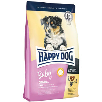 Happy Dog Baby Original is for puppies from 4 weeks old. It promotes a balanced diet and optimum development. The unique loop shape makes the biscuits particularly easy to digest. The proven recipe offers a variety of 5 selected premium quality proteins and nutritious New Zealand mussels. The Happy Dog Natural Life Concept® supplies dogs with all the ingredients that will benefit their bodies holistically. Once they reach 7 months, they should be gradually changed over to Happy Dog Junior Original with reduced energy content to prevent an oversupply. Made in Germany under rigorous quality control. Unique heart-shaped biscuits – easier to chew, easier to digest Gluten-free Nutritious New Zealand mussels