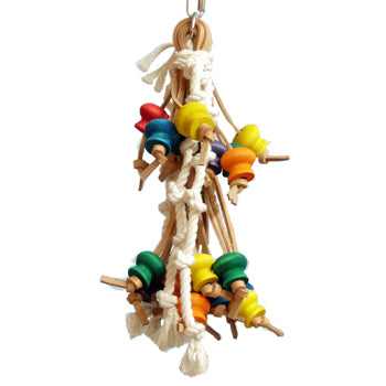 Cotton rope, leather strips and coloured soft wood blocks
