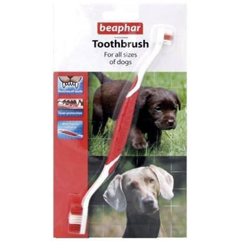The Beaphar Toothbrush, in combination with Beaphar Toothpaste, offers cost-effective, easy-to-use protection for dog's teeth. Early plaque formation must be brushed away in order to prevent bad breath and tooth decay. This two-ended brush can be used for all sized and breeds of dogs.